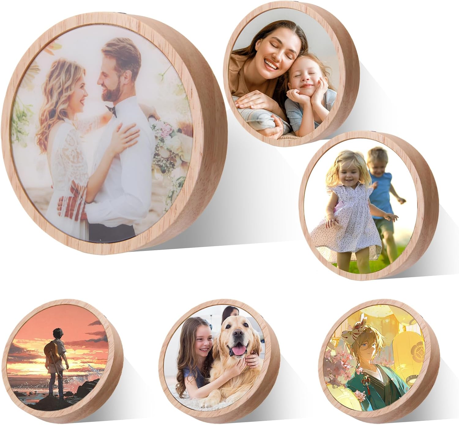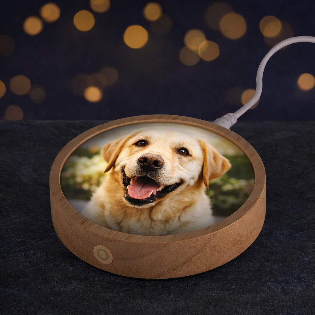 Crafted with a smooth, crystal-clear glass panel and paired with a wooden LED display base, this round sublimation photo light brings your image to life with vibrant color and stunning illumination. Using high-definition sublimation printing, your photo is permanently infused into the glass, creating a crisp, fade-resistant design that shines beautifully from every angle.