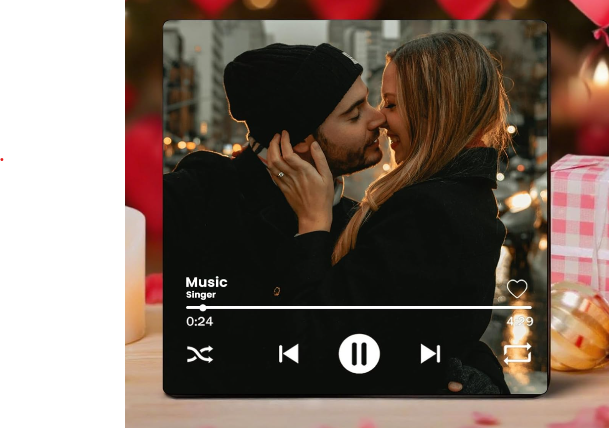 Designed with a sleek black finish and a built-in music player, this unique magnet allows you to personalize it with your photo while pairing it with a song that tells your story. With a simple press, your chosen music plays — turning everyday moments into unforgettable experiences.